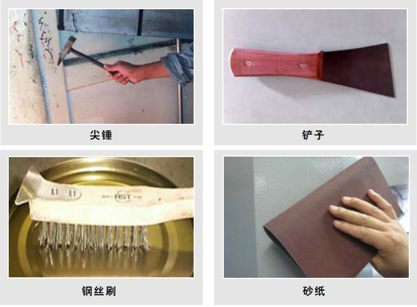 手工工具包括:尖錘、鏟子、鋼絲刷、砂紙
