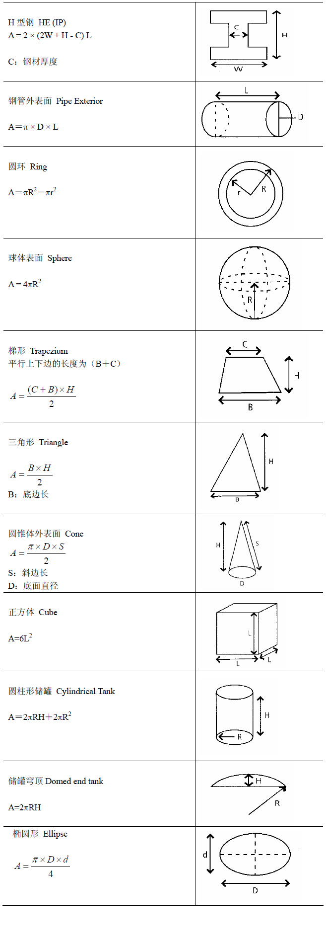 注:以上面積為鋼板兩個(gè)表面積,如果只要單面面積,減半即可。