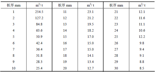 鋼板的厚度,以及重量,與表面積有著一定的關(guān)系,只要知道鋼板的厚度,就可以計(jì)算出每噸鋼板的面積。