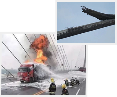 序號 事故時間 橋梁名稱 火災(zāi)原因 1 2009年04月 蕪湖某斜拉橋 客車起火 2 2011年10月 南京某斜拉橋 貨車自燃 3 2011年11月 哈爾濱某大橋 多車起火燃燒 4 2014年10月 廣東番禺大橋 貨車自燃 5 2014年01月 鄭少高速公路某橋梁 汽油罐車著火 6 2017年06月 廣昆高速公路某橋梁 貨車自燃 7 2018年03月 湖北某斜拉橋 貨車自燃 8 2020年07月 武漢某斜拉橋 貨車自燃 9 2021年07月 南京某懸索橋 白油罐車起火 10 2022年09月 安徽某高架橋 硅油罐車起火 二、傳統(tǒng)防火材料的問題