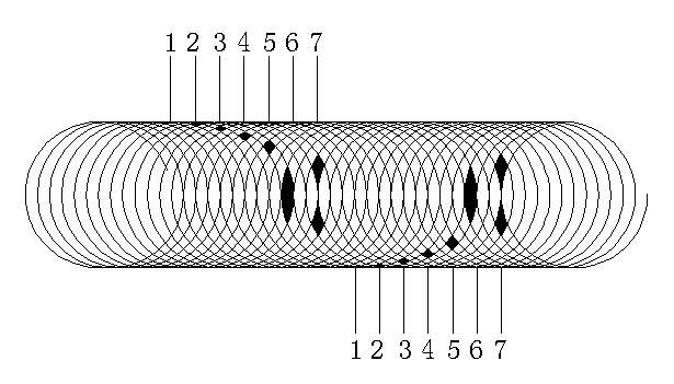(c)評級時可以7級(最內(nèi)層)開始評定,也可以1級(最外圈)評級,按順序檢查各部位的漆膜完整程度,如某一部位的格子有705以上完好,則認為該部位是完好的,否則認為壞損。例如,部位1漆膜完好,附著力最佳,定為1級;部位1漆膜壞損而部位2完好的,附著力次之定為2級。依據(jù)類推,7級附著力最差。通常要求比較好的底漆附著力應(yīng)達到1級,面漆的附著力可在2級左右。