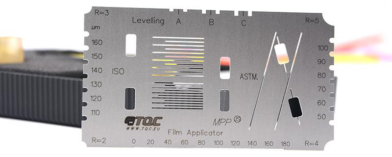 在劃格法測定附著力時,可以最高測定250μm厚度的涂膜。根據(jù)銀粉漆涂層厚度大小,可以選擇不同的劃格間距,一般為涂層小于60μm,硬質(zhì)底材間距1mm,軟質(zhì)底材間距為2mm;涂層厚度為60-120μm,軟硬質(zhì)底材間距均為2mm;涂層厚度大于120μm,軟硬質(zhì)底材間距選擇3mm。在ISO12944中規(guī)定,附著力需要達到1級才能認定為合格;在GB中,附著力達到1-2級時認定為合格。 劃圈法與劃格不同處在于,劃圈交叉所形成部位的面積是遞增的,評級考察的是不受損區(qū)域所處的位置,而劃格法每一個劃格面積是固定的,評級采用受損面積比率。