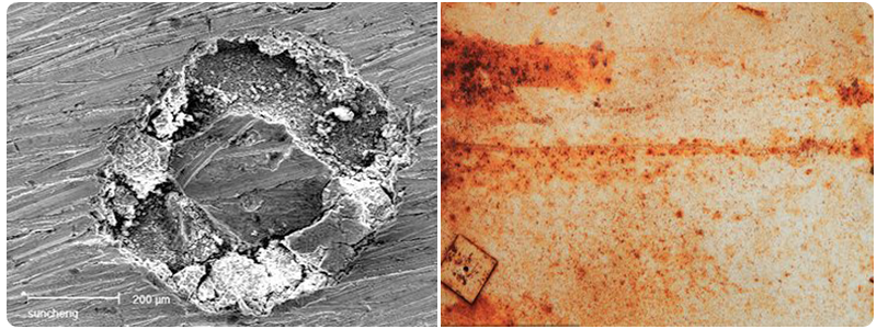 在這些點(diǎn),腐蝕的作用會(huì)被嚴(yán)重的放大,從而依據(jù)所處環(huán)境的不同而形成數(shù)種類型的腐蝕孔洞。由于腐蝕孔洞在特別極端的條件會(huì)成為腐蝕的中心核,即使環(huán)境轉(zhuǎn)為正常情況了,腐蝕空洞仍然會(huì)發(fā)生擴(kuò)張,這是由于孔洞的內(nèi)部處于無氧環(huán)境,局部的pH值也非常低,因此腐蝕的速度因自催化過程而加快了。