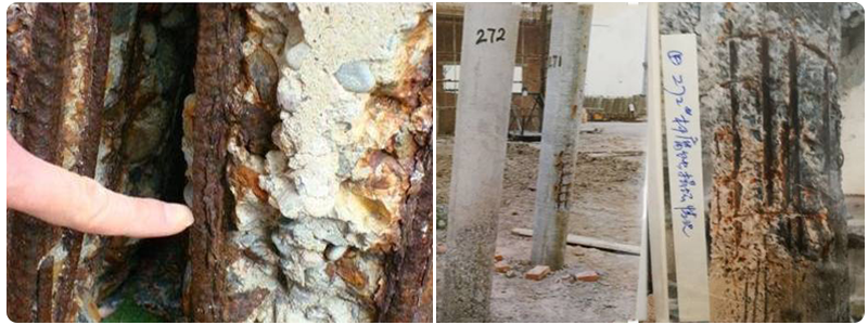 混凝土中的氫氧化鈣、硅酸鹽、鋁酸鹽等與空氣或水中的酸發(fā)生化學(xué)反應(yīng)后,能生成相應(yīng)的鈣鹽和其它新的鹽類,這些鹽類常含有結(jié)晶,如果桿體在生產(chǎn)、運(yùn)輸以及安裝過程中產(chǎn)生細(xì)小的裂紋,那么這些結(jié)晶就會在裂紋的縫隙中進(jìn)行,結(jié)晶膨脹產(chǎn)生的壓力就會使桿體縫隙逐漸增大,最終導(dǎo)致混凝土支解破壞。