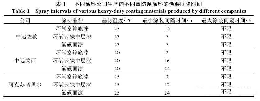 最小涂裝間隔時(shí)間決定了連續(xù)施工時(shí)的最高效率,最大涂裝間隔時(shí)間決定了間斷施工時(shí)的最長(zhǎng)的施工間斷時(shí)間。即,如果超過(guò)了最長(zhǎng)涂裝間隔時(shí)間,那防腐涂層的施工質(zhì)量將得不到保證。