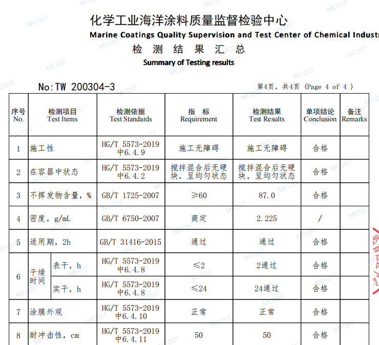 檢測結(jié)果顯示:湖南夢能科技有限公司生產(chǎn)的石墨烯富鋅涂料通過了HG/T 5573-2019 《石墨烯鋅粉涂料》Ⅱ型富鋅涂料C4~C5等級的要求測試。