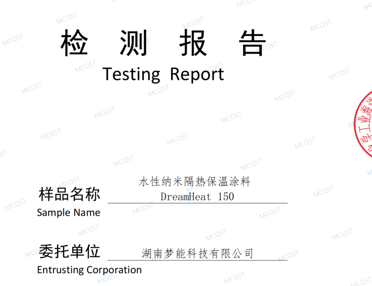 三、夢(mèng)能水性納米隔熱保溫涂料的檢測(cè)報(bào)告