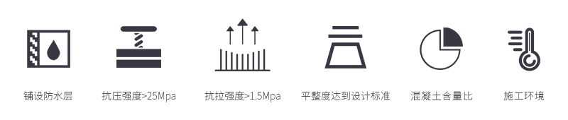 | 表面處理 | 混凝土基層必須堅(jiān)固、密實(shí)、平整、干燥、清潔,不應(yīng)有起砂、起殼、裂縫、蜂窩麻面、松散顆粒、油脂或其它污染等現(xiàn)象 | |||