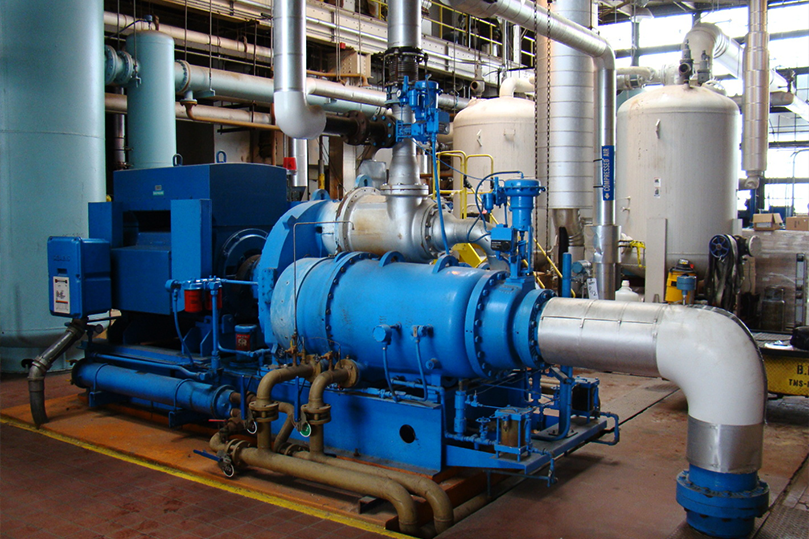 壓縮機(jī)將低壓氣體提升為高壓氣體的一種從動(dòng)的流體機(jī)械?;どa(chǎn)裝置中常用離心式壓縮機(jī)、往復(fù)式壓縮機(jī)等。在離心式壓縮機(jī)中,氣體從軸向進(jìn)入,由于葉輪的旋轉(zhuǎn),氣體被離心力告訴甩出葉輪,然后進(jìn)入流通面積逐漸擴(kuò)大的擴(kuò)大器中,將動(dòng)能轉(zhuǎn)化成壓力能。