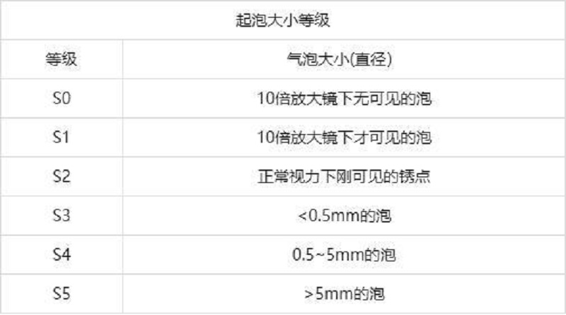例如:起泡2(S3),表示漆膜起泡密度為2級(jí),起泡大小等級(jí)為S3級(jí)