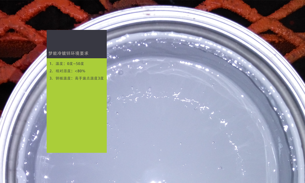 夢能冷噴鋅是由經(jīng)過原子法處理的超細(xì)鋅粉、樹脂以及揮發(fā)性溶劑等單組份組成的產(chǎn)品。冷噴鋅有多種叫法,如冷噴鋅漆、冷涂鋅漆、冷噴鋅涂料。其中鍍層的鋅含量高達(dá)96%,鋅粉純度在99.99%以上,鋅粉粒度3-6μm,造就了冷噴鋅鍍層對基材優(yōu)異防腐蝕性能。以涂裝方式把鋅粉鍍覆在基材表面上的一種材料保護(hù)技術(shù),是在常溫自然條件下就可達(dá)到熱鍍鋅、噴鋅、噴鋁的防銹效果的新型防腐工藝。