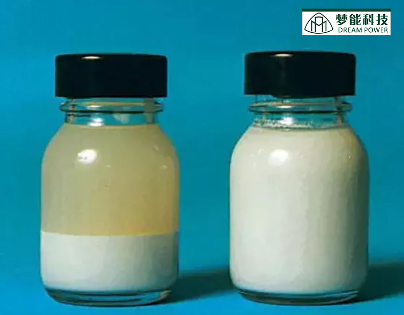 原因:締合型增稠劑與乳液粒子間的締合不牢,使得該締合的乳液粒子在儲存過程中解吸脫離出來,懸浮于涂料的表層,出現(xiàn)涂料分乳液的現(xiàn)象。涂料的低剪切黏度過低,同樣會造成分層現(xiàn)象。