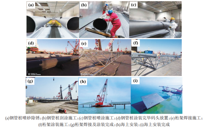 依據(jù)上述方案,海上光伏桁架及鋼管樁在碼頭進(jìn)行了涂裝施工,并成功下水安裝,如圖2所示。