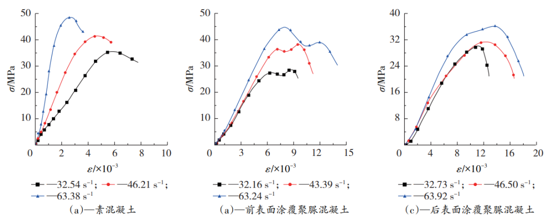 圖1 不同應(yīng)變率下混凝土和聚脲混凝土的動(dòng)態(tài)壓應(yīng)力-應(yīng)變曲線