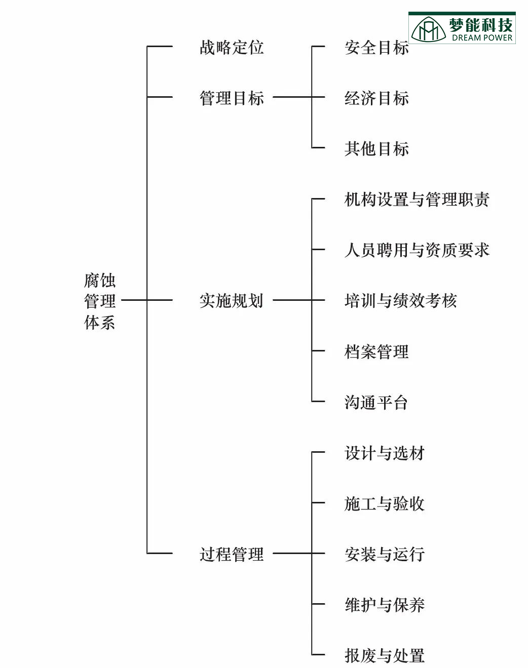 為了更好地管理腐蝕問(wèn)題,應(yīng)建立一套完善的、具有廣泛適用性的系統(tǒng)的管理體系,通過(guò)組織的目標(biāo)、制度、程序等來(lái)管理腐蝕問(wèn)題,指導(dǎo)組織的腐蝕管理工作。腐蝕管理體系內(nèi)涵豐富,要在實(shí)踐的過(guò)程中不斷發(fā)展完善[1,4,5]。