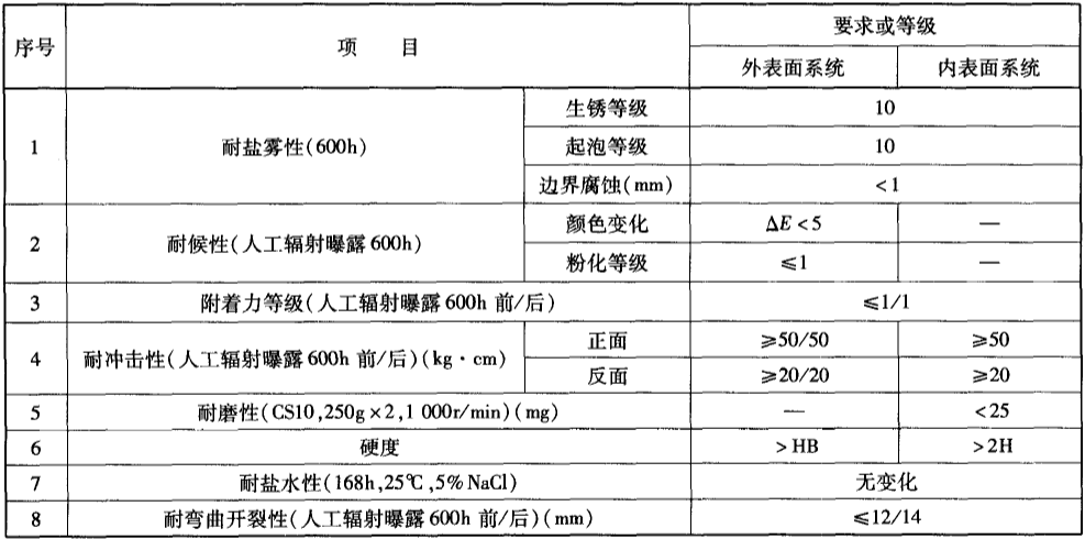 表4 集裝箱涂料配套系統(tǒng)基本要求
