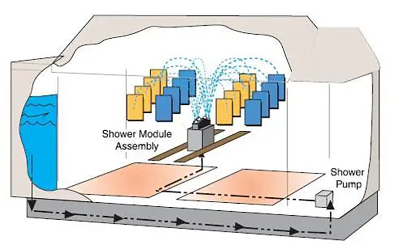 現代腐蝕試驗箱的另一個進步是控制腐蝕噴霧。用戶能夠對噴霧打開/關閉的時間進行編程,以便他們能夠精確控制噴到試樣上的沉降量。這是GMW 14872測試標準中另一種有效的控制腐蝕速率的方法,傳統(tǒng)鹽霧試驗應用強調噴霧的均勻性和避免“直接沖擊”,然而新方法強調噴霧快速潤濕試樣并沖洗掉鹽殘渣,以留下長時間過渡到其他試驗階段(參見下圖)。