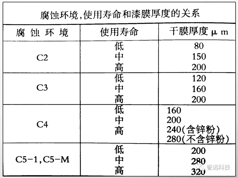 在一定的腐蝕環(huán)境下,涂層的配套確定后,涂層厚度與保護(hù)壽命呈直線關(guān)系。