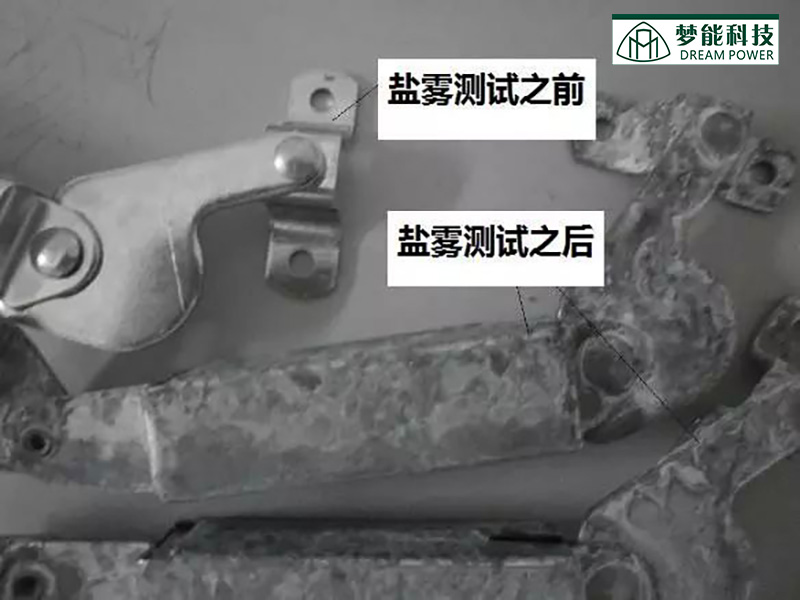 中性鹽霧試驗是一種常用的人工加速腐蝕試驗,它是模擬沿海大氣環(huán)境中,溫暖的海面向寒冷的空氣蒸發(fā)和海浪沖擊下潑向空間的含氯離子微小液滴,形成細霧狀介質對金屬的腐蝕條件,采用一定濃度的氯化鈉溶液,在加壓下以細霧狀噴射,由于霧粒均勻地落在試樣表面,并不斷維持液膜更新,因而對涂層的腐蝕符合大氣腐蝕基本原理,實現(xiàn)測定涂層的加速腐蝕作用。