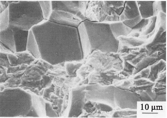 在一定壓力的氫氣環(huán)境下,對缺口或圓棒試樣進行慢應(yīng)變速率拉伸試驗,可判定氫對材料拉伸性能的影響。已有的試驗結(jié)果表明,氫脆對材料拉伸性能有顯著影響。Hofmann W等人進行了最早的慢應(yīng)變速率拉伸試驗,對碳含量0.22%的碳鋼在15.2 MPa氫氣壓力下的試驗結(jié)果表明,隨著氫氣壓力的增加,鋼的拉伸強度比在空氣中下降。而同一類型正火鋼在氫氣和空氣中的拉伸試驗結(jié)果無顯著差別。隨著鋼拉伸強度的增加,斷面收縮率減小,表明氫脆對鋼延展性的降低隨鋼拉伸強度增大而增強。提高應(yīng)力水平會降低碳鋼對氫脆失效的抗力。氫氣壓力對金屬管道材料在150oC以下時力學(xué)性能降低有很大影響。Walter R J等人認為氫氣環(huán)境中鋼拉伸性能的降低與氫氣壓力平方根呈線性函數(shù)關(guān)系。Oriani R A進一步研究發(fā)現(xiàn)斷面收縮率的減少與氫壓力的平方根成正比。雖然斷面收縮面積減小,但氫對鐵素體鋼拉伸強度影響不大,該影響與微觀組織相關(guān)。鋼的斷口形貌為典型的沿晶斷裂,呈放射狀向周圍擴展,靠近斷口邊緣處為準解理斷裂,見圖1。