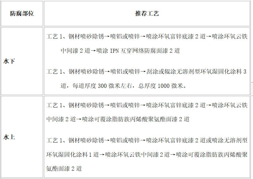 1、 防腐蝕推薦方案基本要求