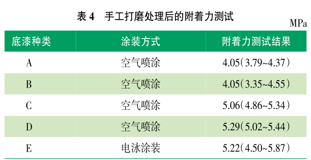 4.2 底漆的配套性對(duì)涂層附著力的影響