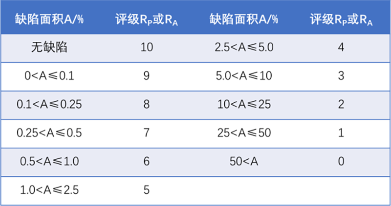 A—計(jì)算RP時(shí),為基體金屬腐蝕部分占總面積的百分比;計(jì)算RA時(shí),為保護(hù)層腐蝕部分占總面積的百分比。