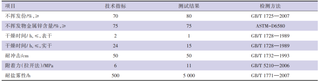 2.1 石墨烯環(huán)氧富鋅底漆基本性能測(cè)試