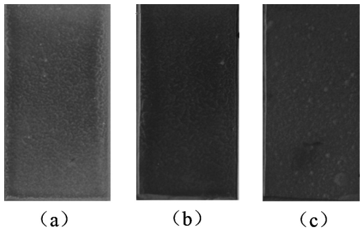 在Q235鋼板表面涂裝涂料,漆膜厚度在30 μm左右,將涂裝表干后的試片封邊,放入質(zhì)量濃度為3.5%的鹽水中浸泡,定時(shí)觀察并記錄不同時(shí)間內(nèi)漆膜的情況。由圖2可以看出,鹽水浸泡1500h,漆膜未出現(xiàn)起泡和破裂,試片表面未被鹽水腐蝕,說(shuō)明石墨烯改性環(huán)氧防腐涂層具有較強(qiáng)的耐鹽水作用,可以有效地阻止鹽水的滲入,起到良好的防腐蝕作用。