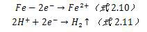 金屬材料與酸接觸,發(fā)生腐蝕析出氫氣,也是析氫腐蝕。水中含有鹽酸,或者游離的二氧化碳溶解導(dǎo)致水中pH低于7,都有可能產(chǎn)生析氫腐蝕。析氫腐蝕是一種電化學(xué)腐蝕,常發(fā)生于給水系統(tǒng)和凝結(jié)水系統(tǒng),在省煤器中也有可能出現(xiàn)該類腐蝕,其反應(yīng)如下: