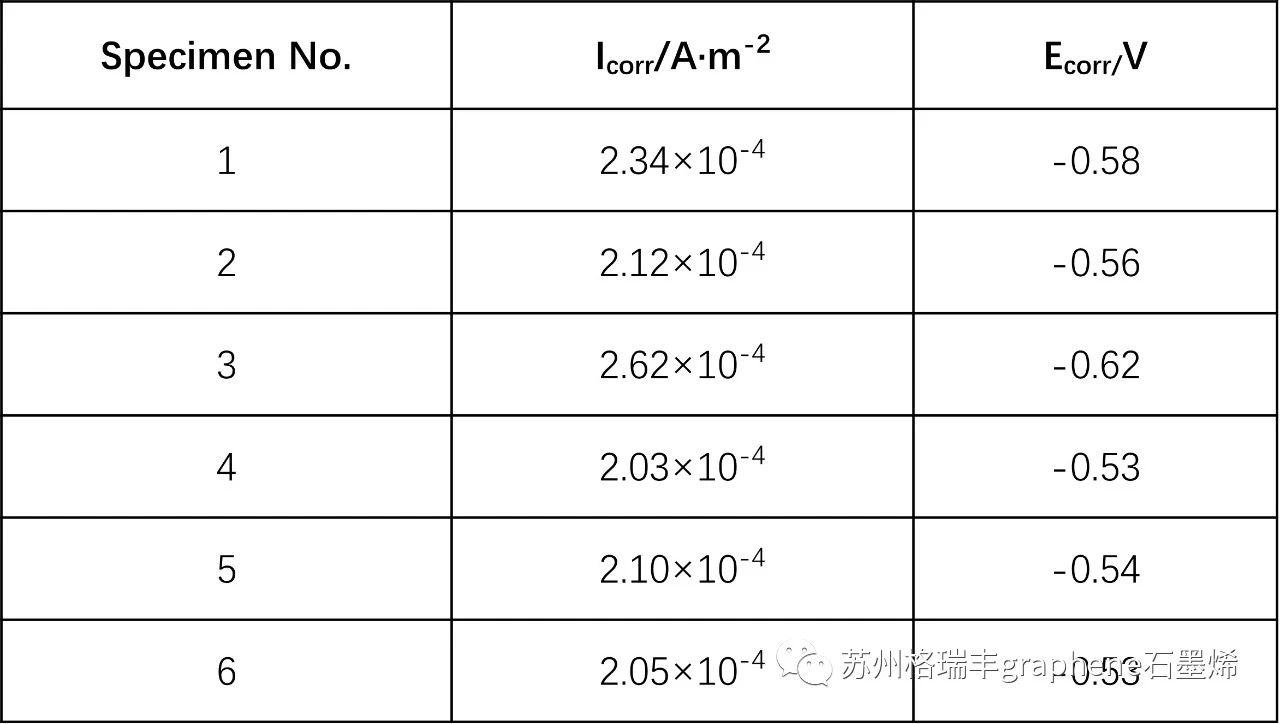 表3石墨烯涂層電化學(xué)腐蝕參數(shù)