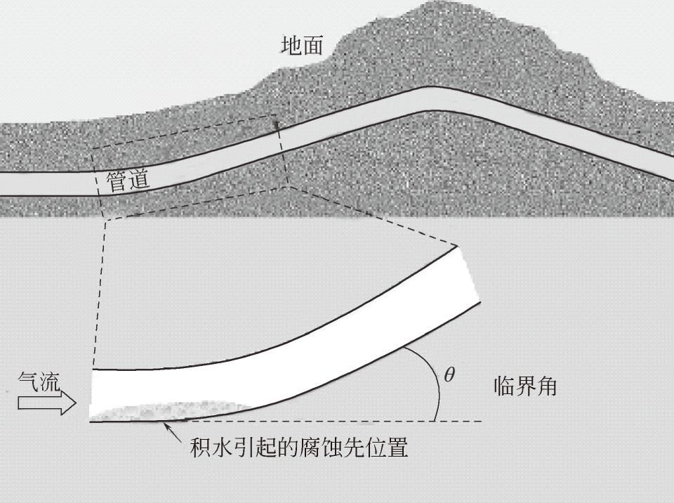 圖1 由于積水引起的管道內(nèi)腐蝕風(fēng)險與內(nèi)腐蝕直接評估臨界角