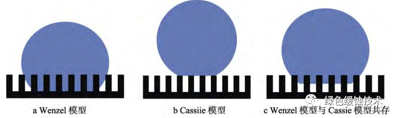 圖3 Wenzel模型和Cassie-Baxter模型