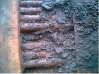 某公司催化裝置分餾塔頂循換熱器(以下簡(jiǎn)稱換熱器)殼程物料為頂循油,殼程采用16MnR鋼制造;管程物料為除鹽水,管束采用10號(hào)鋼制造。自2003年7月投入使用至今,換熱器頻繁發(fā)生腐蝕泄漏,已報(bào)廢8臺(tái)內(nèi)芯,2012年4月和9月,E-203/1.2和E-203/3.4號(hào)管束又因嚴(yán)重腐蝕而分別發(fā)生泄漏,嚴(yán)重影響正常生產(chǎn)?;诖?,本工作對(duì)頂循換熱器的腐蝕原因進(jìn)行了分析,并提出了相應(yīng)的防護(hù)建議。