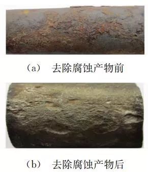 圖2 管束去除腐蝕產(chǎn)物前后的宏觀腐蝕形貌