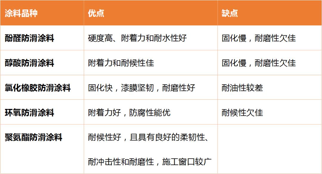 表1 不同種類的防滑涂料的優(yōu)缺點(diǎn)對比