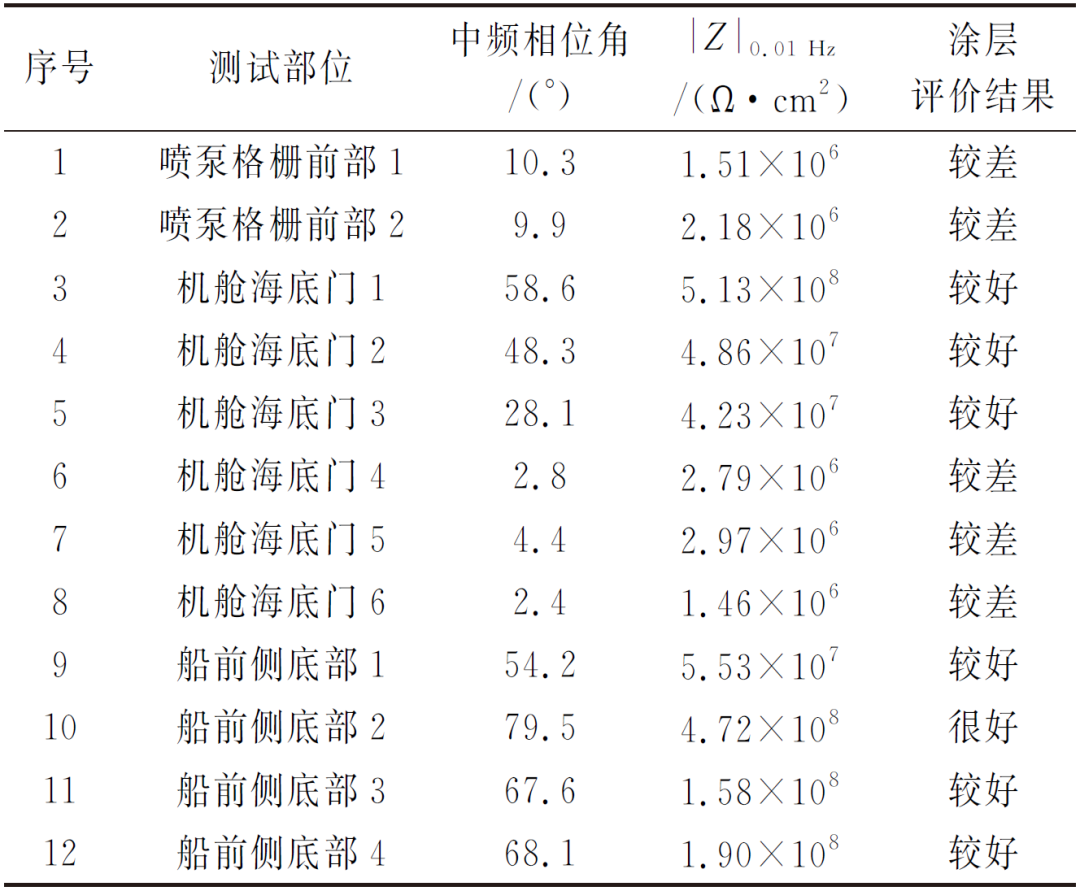 表1 某船舶不同部位涂層的性能評價結(jié)果
