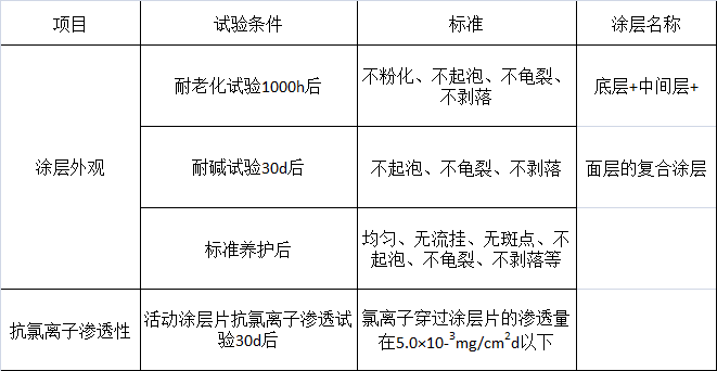 (1)防腐蝕涂料應(yīng)具有良好的耐堿性、附著性和耐蝕性,底層涂料尚應(yīng)具有良好的滲透能力;表層涂料尚應(yīng)具有耐老化性。