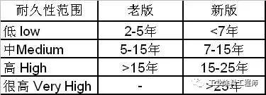 2、關(guān)于耐久性范圍的變化如下表所示: