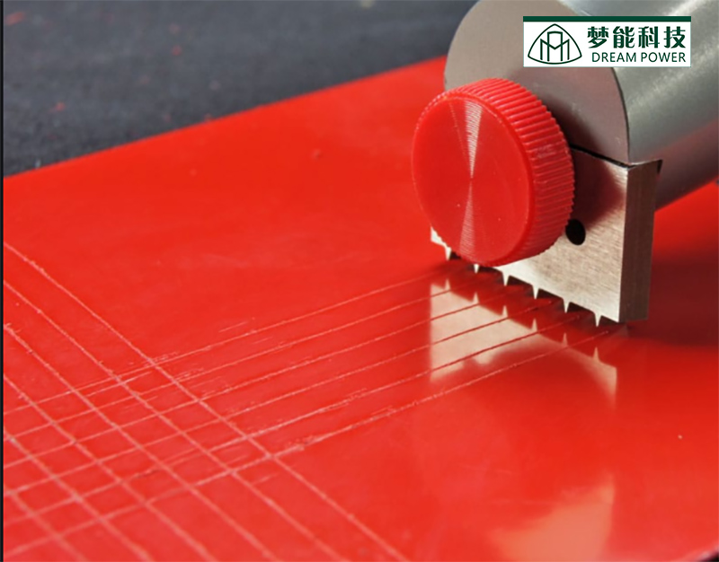 涂料的附著力是指涂膜與基材之間的結(jié)合強(qiáng)度,劃格法是最常用的附著力檢測方法,這是簡單且相對便宜的測試方法,能提供有關(guān)涂層在標(biāo)準(zhǔn)條件下的粘附性能的定性信息。劃格法測試通常包括在涂層表面上使用切割工具進(jìn)行一系列平行切割,然后以直角重復(fù)以創(chuàng)建網(wǎng)格或格子圖案,切割的數(shù)量取決于所遵循的標(biāo)準(zhǔn)或規(guī)范,運用在兩個外導(dǎo)線之間的一排6/11個刀片,劃出25/100個方格,再使用標(biāo)準(zhǔn)評級表目視評估或評估涂層的附著力。