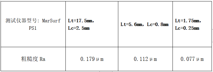 Lc代表:截止波長或行程,Lt代表:測量長度,Lt與選擇的Lc有一一對應(yīng)關(guān)系(Lt=Lc*n,n是探針測量次數(shù),該儀器n=7)。一般有Lc:0.25mm、0.8mm、2.5mm三個檔位進(jìn)行選擇;對應(yīng)的 Lt即為:1.75mm,5.6mm,17.5mm。在不同的Lc下會測試得到不同的粗糙度Ra測試結(jié)果,一般來說Lc越大,測試Ra值越高。所以在表示Ra測試結(jié)果時,通常需要標(biāo)注清楚所選用的Lc。