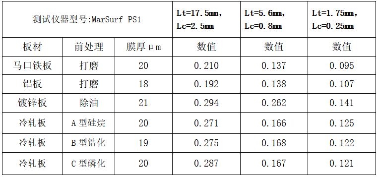 表1.不同Lc下馬口鐵板基材Ra值測試結(jié)果