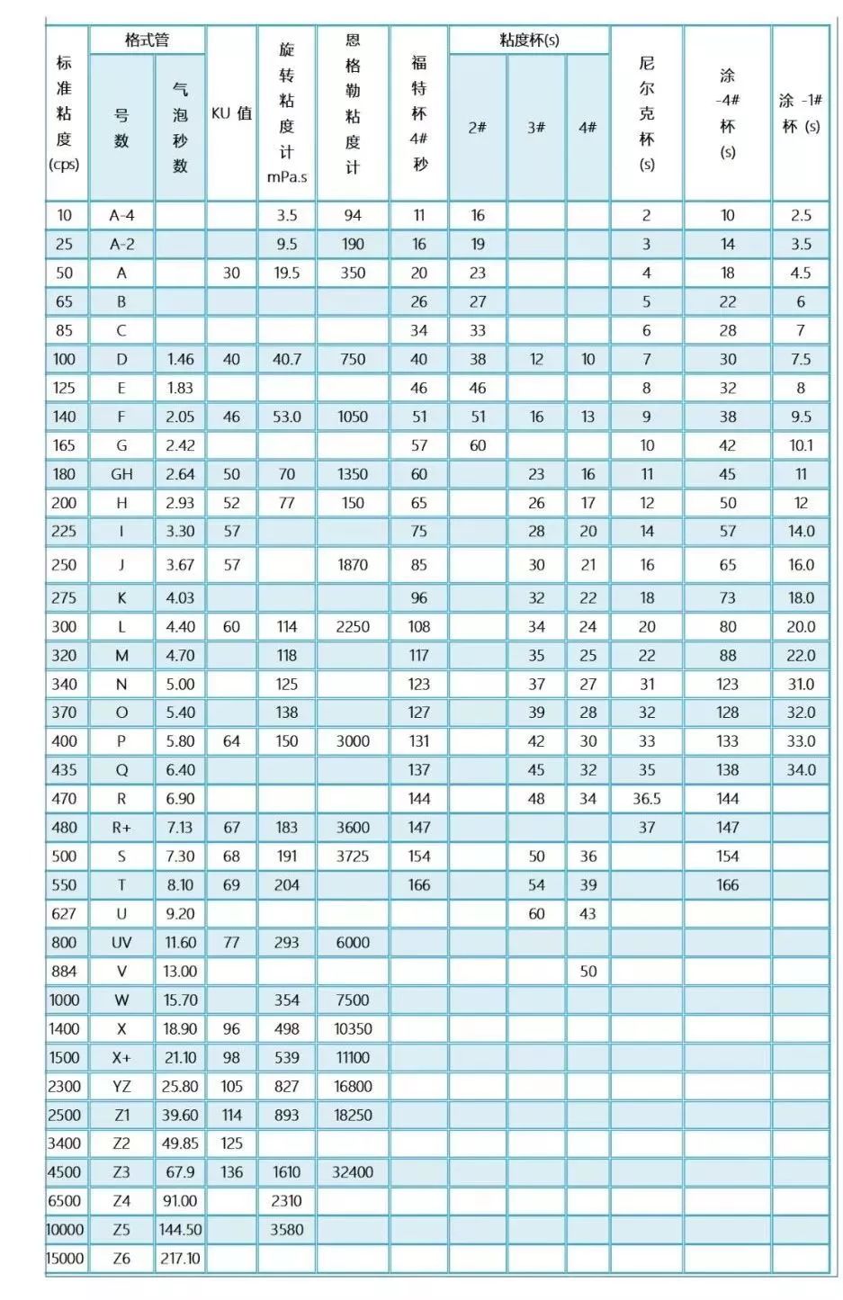 最后,給大家附一張涂裝過程中也是經(jīng)常會使用到粘度對照表~