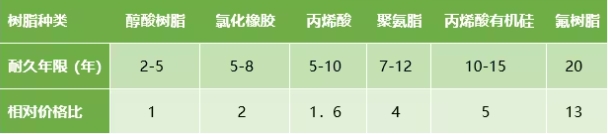 油脂≤酚醛≤醇酸樹脂≤氯化橡膠系≤丙烯酸系≤聚氨脂系≤丙烯酸有機(jī)硅≤氟樹脂類
