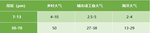 熱鍍鋅不同厚度的耐大氣腐蝕壽命: 單位:a