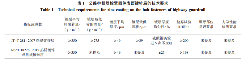 2.1國內(nèi)公路護欄螺栓緊固件表面防腐的技術標準現(xiàn)狀