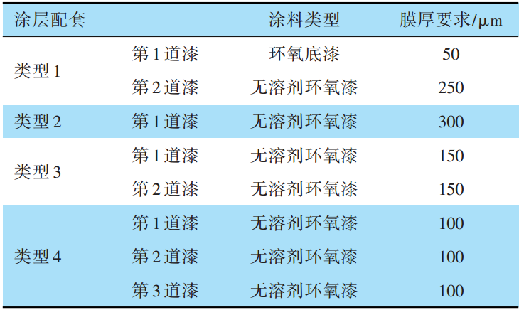 表1 常見(jiàn)的無(wú)溶劑環(huán)氧漆涂層配套