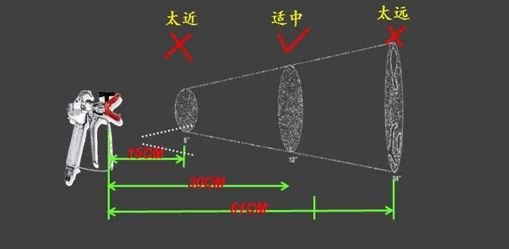 3. 采用壓力輸入較小的壓力泵時(shí),噴槍最有效距離一般為15~25cm(如常用的隔膜泵輸入的壓力配套空氣噴槍或單獨(dú)使用的上壺噴槍與下壺噴槍)。