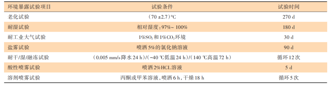 如表1所示,在該標(biāo)準(zhǔn)中,環(huán)境暴露試驗(yàn)由7項(xiàng)檢測(cè)項(xiàng)目組成,值得注意的是,UL標(biāo)準(zhǔn)所要求的理化試驗(yàn)時(shí)間最長(zhǎng)的高溫老化試驗(yàn)項(xiàng)目長(zhǎng)達(dá)270天。完成理化試驗(yàn)后,還需進(jìn)行耐環(huán)境暴露試驗(yàn)后的耐火試驗(yàn)。判定條件依據(jù)未經(jīng)環(huán)境暴露試驗(yàn)的空白樣品的耐火時(shí)間為基準(zhǔn),要求經(jīng)環(huán)境暴露試驗(yàn)的樣品耐火時(shí)間能達(dá)到基準(zhǔn)隔熱時(shí)間的3/4。