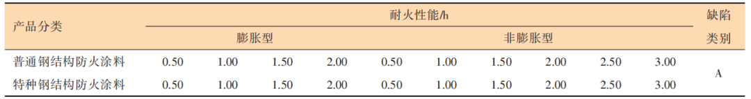 表4 鋼結(jié)構(gòu)防火涂料耐火性能等級(jí)
